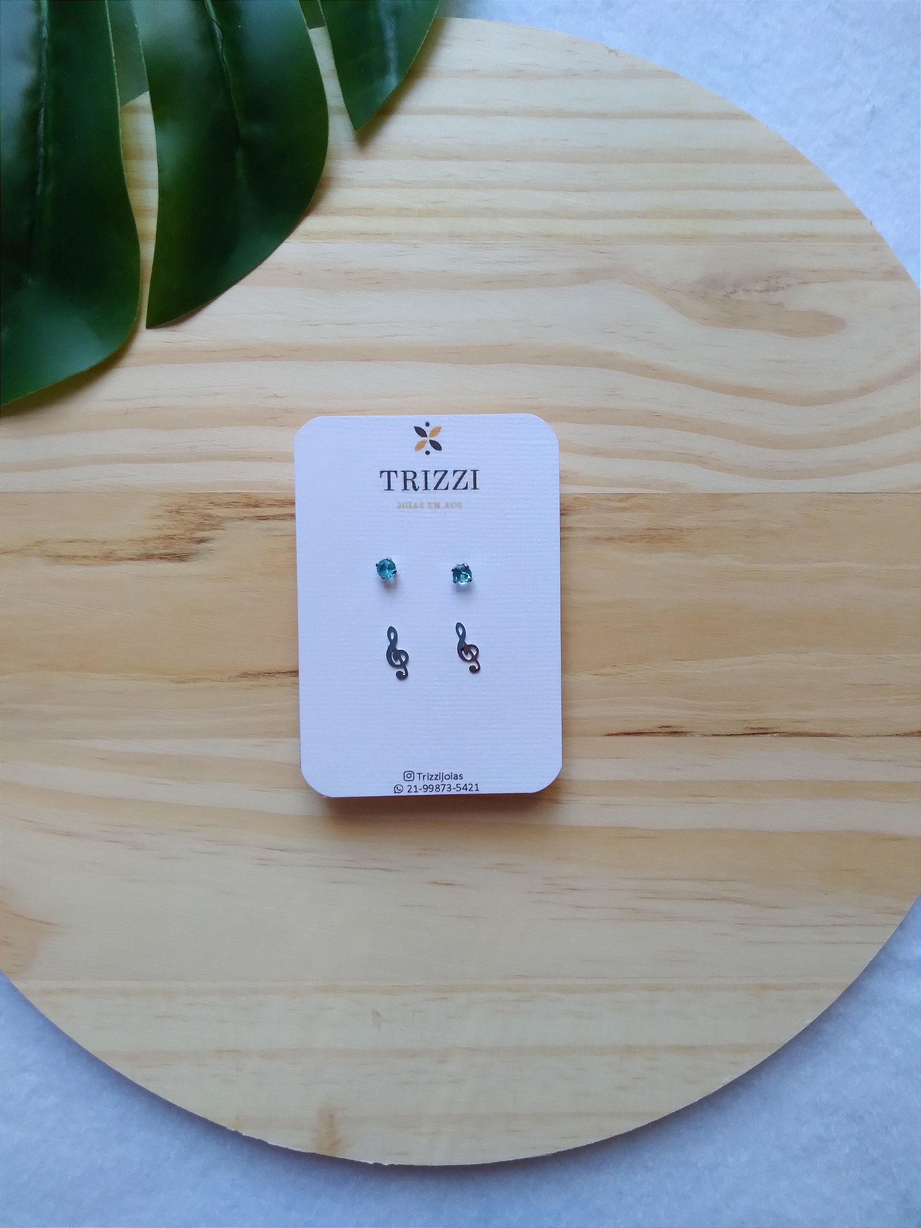 Descrição: Duo de Brinco de Strass e Nota Musical de Aço.